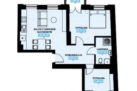 Dwa pokoje, przedpokoj, aneks kuchenny. łazienka