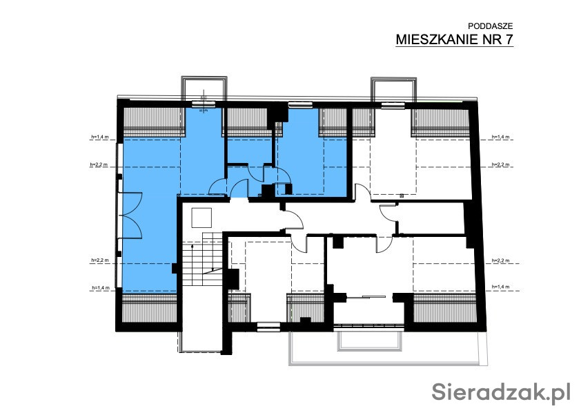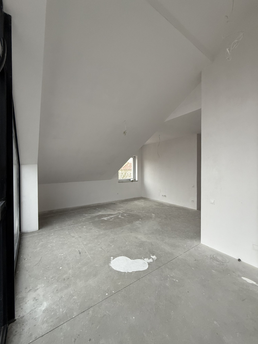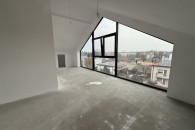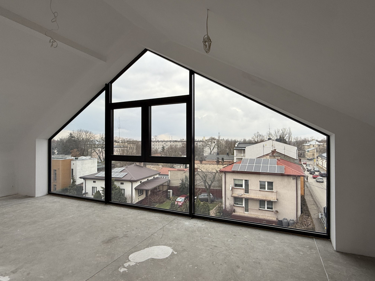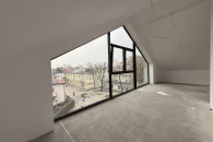 Apartament wysoki na poddaszu, wysokość ponad 290 cm, salon z oknem do podłogi w wierzchołku ponad 400cm,