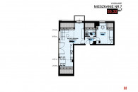 Dwa pokoje, przedpokoj, aneks kuchenny z spiżarką, łazienka.