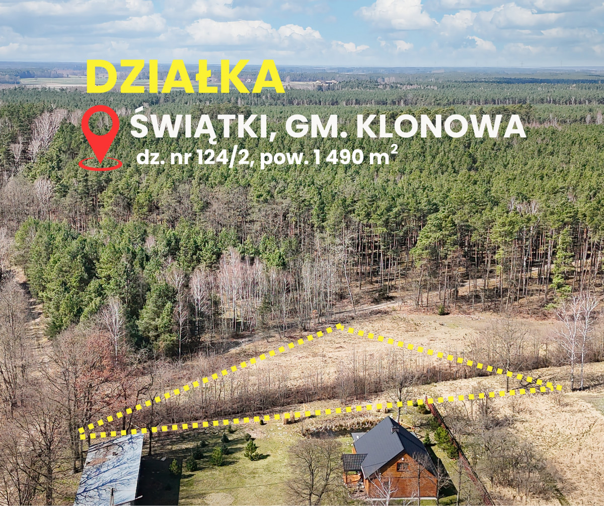 DO SPRZEDANIA DZIAŁKA BUDOWLANA O POW. 1 490 MKW POŁOŻONA W MIEJSCOWOŚCI ŚWIĄTKI GM. KLONOWA , POW. SIERADZKI.