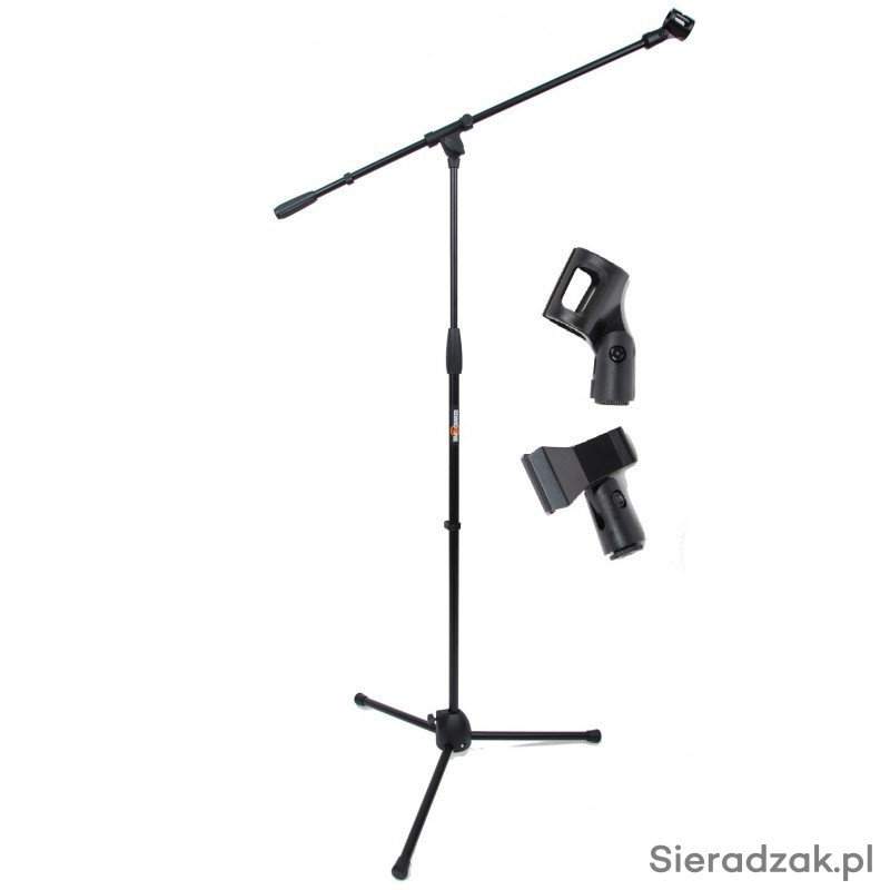 Stabilny, lekki i nowoczesny statyw mikrofonowy z płynną regulacją wysokości w zakresie od 91 cm do 150 cm, w zestawie z dwoma uchwytami mikrofonowymi na kabel i bezprzewodowy. Posiada regulowane ramię o długości 74 cm. Wyposażony został w solidne składane nóżki o rozstawie 59 cm zakończone antypoślizgowymi gumowymi nakładkami. Statyw sprawdzi się w każdej sytuacji, zarówno w pozycji stojącej i siedzącej wykonawcy.