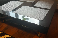 Sprzedam stolik jak na zdjęciu. Posiada 2 szuflady i 2 wnęki :) Na srebrnych chromowanych nóżkach. Wysokość 30 cm. Odbiór osobisty.