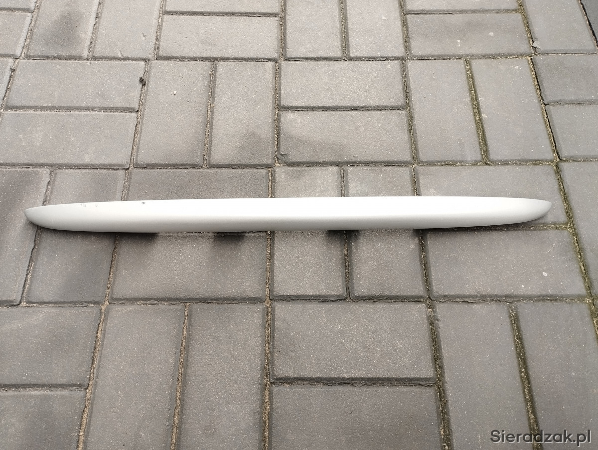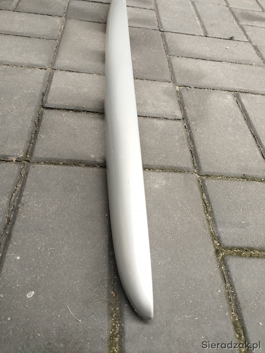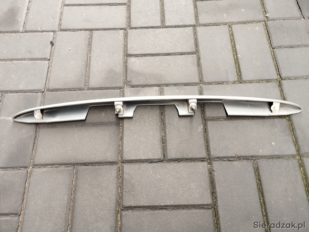 Srebrna listwa tylnej klapy bagażnika do peugota 206. Posiada delikatne rysy i brak jednego zaczepu (pokazane na zdjęciach), ale drugi zaczep i mocowania na śruby wystarczająco trzymają listwę na miejscu.