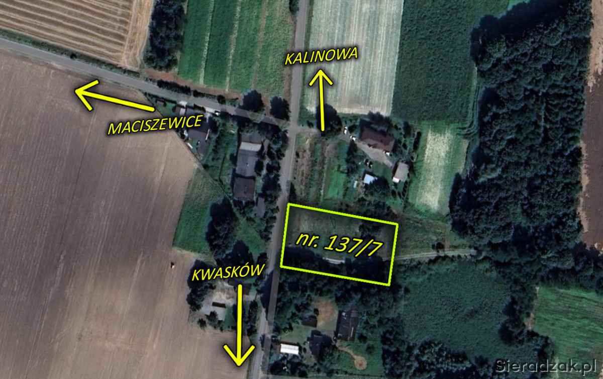 Działka usytuowana jest między Błaszkami a Kalinową przy drodze asfaltowej, odległość do Błaszek to 5km, a do Kalinowej 4km. W pobliżu 1km znajduje się szkoła podstawowa.