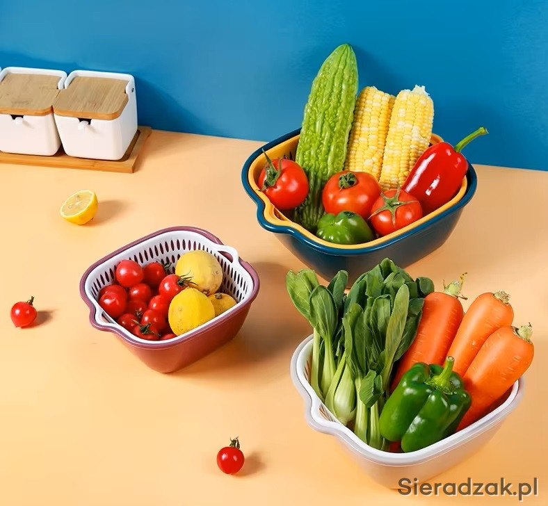 Wielofunkcyjny kosz na owoce i warzywa. Bardzo praktyczny durszlak z misą.