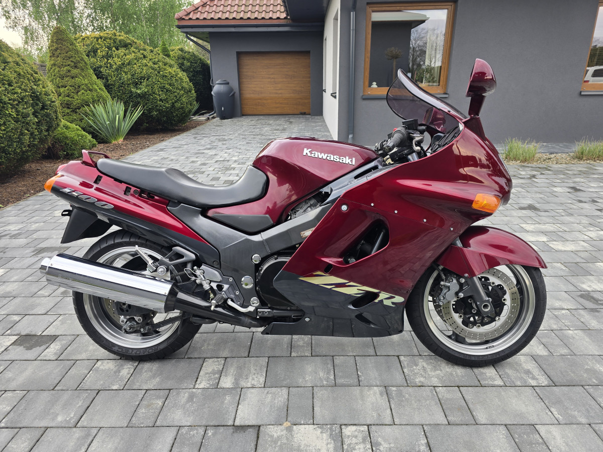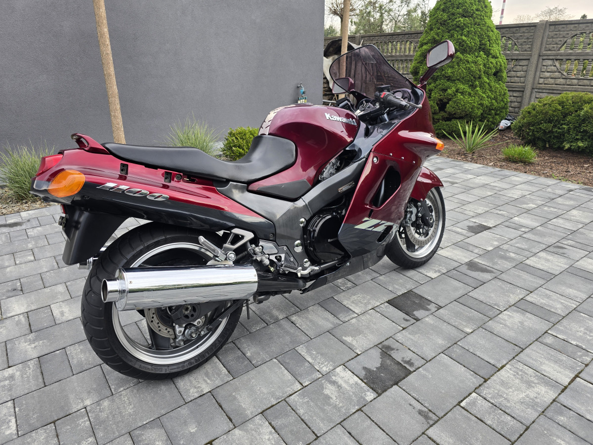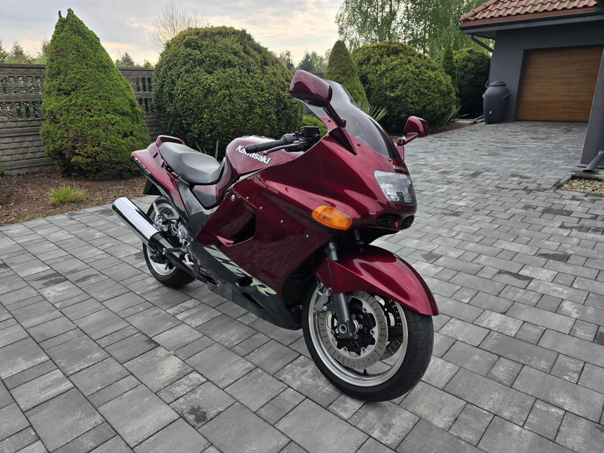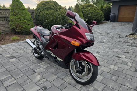 Do sprzedania Kawasaki ZZR1100 z 2003r. Motocykl świeżo sprowadzony z Niemiec. Od nowości posiadał tylko dwóch właścicieli. Motocykl bezwypadkowy. Wizualnie jak na swoje lata prezentuje się bardzo ładnie. Mechanicznie w pełni sprawny i gotowy do jazdy. Oryginalny przebieg tylko 39771km udokumenotwany fakturami za naprawy oraz wydrukami z przeglądów TUV. Silnik, skrzynia i sprzęgło pracują bardzo dobrze. Ładnie wkręca się obroty. Odpala bez problemu zimny i ciepły. Opony i napęd w bardzo dobrym stanie. Motocykl ma wymieniony olej wraz z filtrem, nowy filtr powietrza, nowe świece i nowy filtr paliwa. Zostały również wyczyszczone gaźniki w myjce ultradźwiękowej (założone nowe zaworki iglicowe i nowe uszczelki komór pływakowych) oraz zrobiona synchronizacja przepustnic. Motocykl w pełni przygotowany do sezonu. Nie wymaga żadnego wkładu na start. Kupujący zwolniony z opłaty skarbowej. Zapraszam na oględziny i jazdę próbną. W ofercie posiadam duży wybór motocykli i skuterów. Możliwość dowozu motocykla do klienta. Na więcej pytań chęntie odpowiem pod numerem telefonu 667-702-600.Motocykl sprzedaje bez kufrów i stelaży.