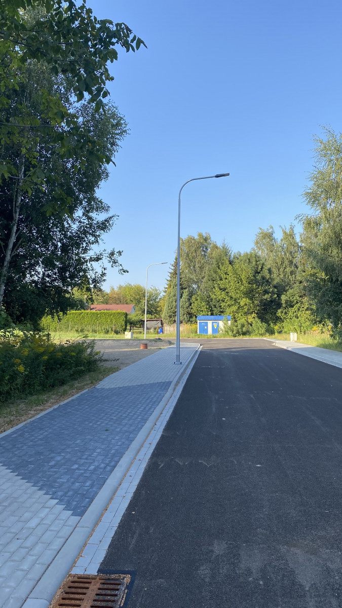 -od strony wjazdu w narożnikach działki oświetlenie miejskie (lampy LED)