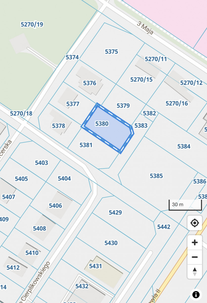 Sprzedam atrakcyjną działkę budowlaną pod zabudowę mieszkaniową w Sieradzu, przy ul. Cierplikowskiego.