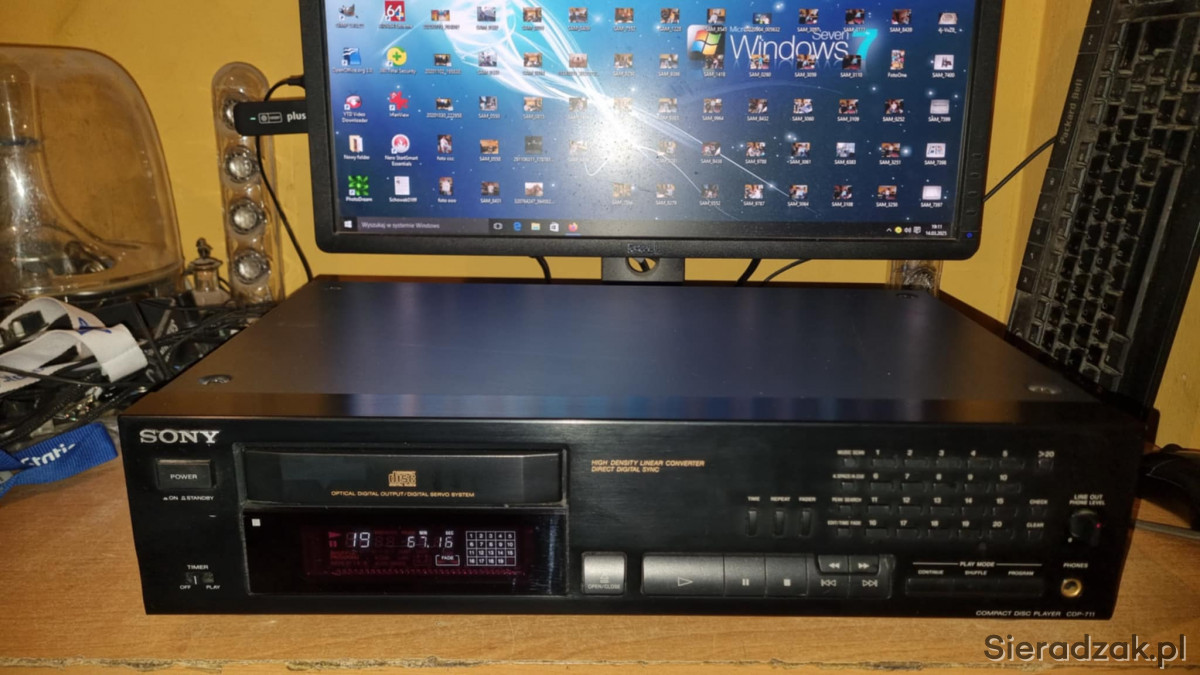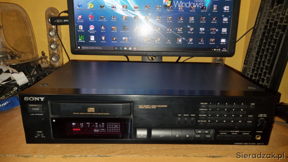 Odtwarzacz sprawny czyta CD jak i CD-Ry. Stan jak na foto. Pilot w komplecie. Polecam.