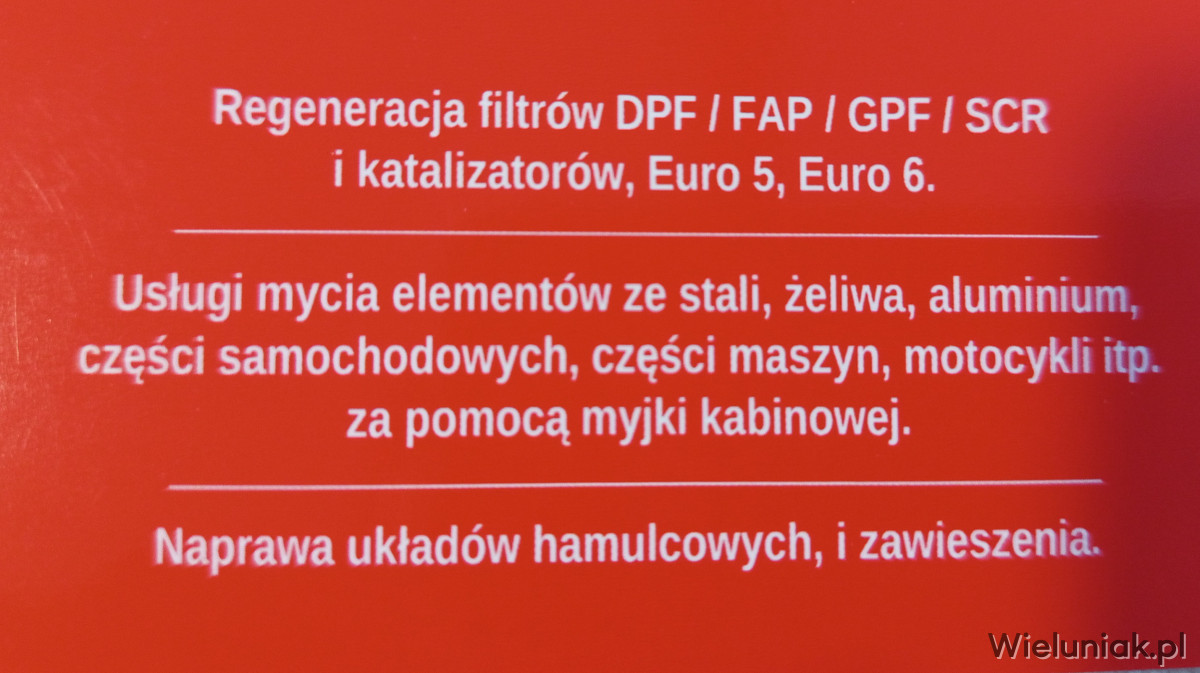 Regeneracja filtrów DPF / FAP / GPF / SCR i katalizatorów , Euro 5, Euro 6. Możemy wymontować filtr, wykonać czyszczenie po czym zamontować i zaprogramowac. Wykonujemy usługi mycia elementów ze stali, żeliwa czy aluminium ,części samochodowych , części maszyn, motocykli itp. za pomocą myjki kabinowej. Naprawa układów hamulcowych, i zawieszenia.