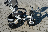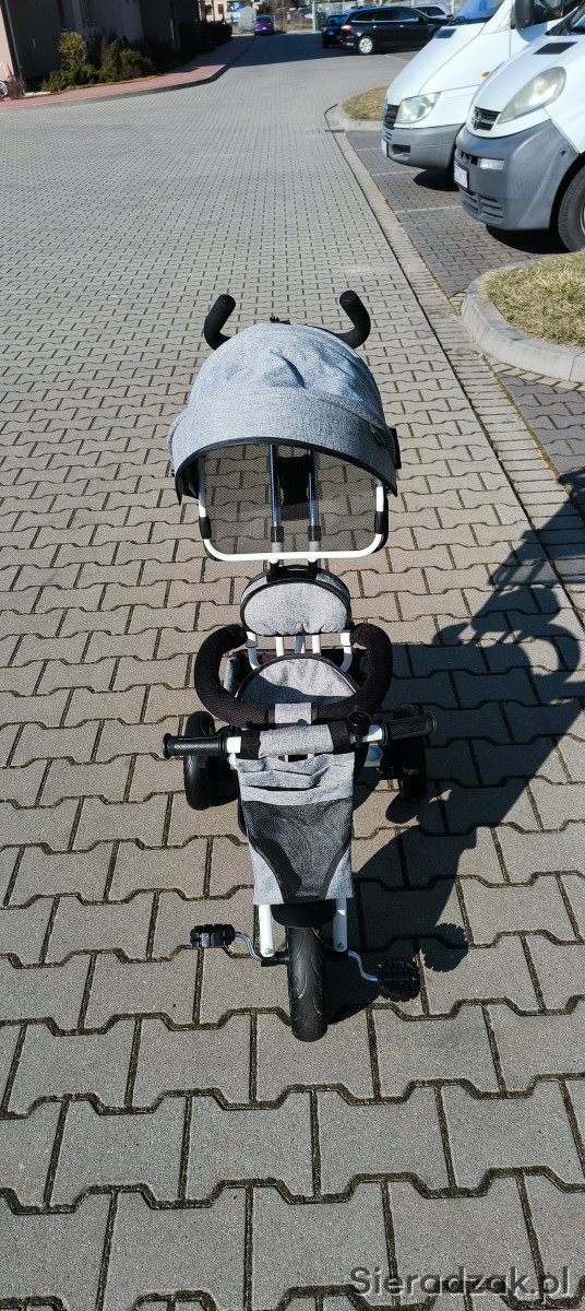 Rowerek rośnie razem z Dzieckiem, można zdemontować daszek, a później również oparcie i rączkę do sterowania. Dzięki temu rowerek zmienia się w kolejnych etapach rozwoju Twoje Dziecka. Rowerek posiada funkcję "wolne koło" - rozłączające pedały - dla młodszych Dzieci. Wygodne siedzisko z miękką wyściółka oraz miękkie oparcie (zdejmowanej do prania) zapewnia maksymalny komfort jazdy. Regulowane pasy utrzymują stabilność Dziecka w siedzisku. Barierka ochronna rozłączana - żeby łatwiej było wsiąść do rowerka jak również całkowicie demontowana. Daszek świetnie chroni przed promieniami słońca. Rowerek posiada chowane podnóżki dla większego bezpieczeństwa. Z tyłu znajduje się duży koszyczek, a na kierownicy dzwonek. Nowoczesna rączka do sterowania z miękką otuliną,żeby można było wygodnie prowadzić rowerek oraz uchwyt na napój. Rączka z wzmocnioną konstrukcją.