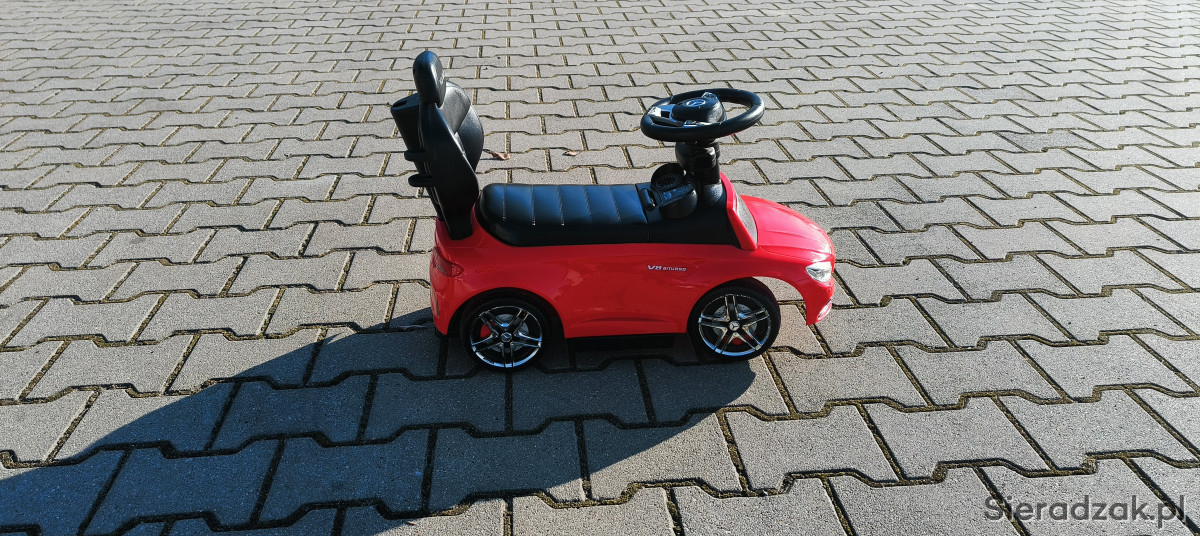 Kierownica jeździka Mercedes wyposażona jest w przyciski z dźwiękami, które dodają atrakcyjności i zachęcają dziecko do interaktywnej zabawy. Został zaprojektowany z myślą o dzieciach powyżej 12 miesiąca życia, oferując komfort i bezpieczeństwo podczas zabawy. Maksymalne obciążenie jeździka do 23 kg.