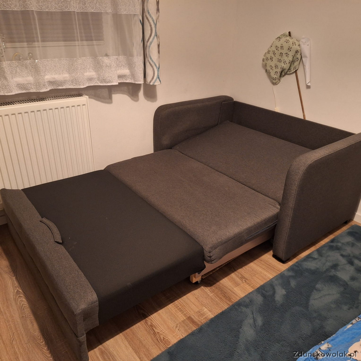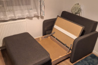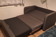 Sprzedam mała rozkładaną kanapę. Powierzchnia spania 100x180cm. Rozmiar złożonej to 80x130cm. Wysokość 85cm. Posiada pojemnik na pościel.