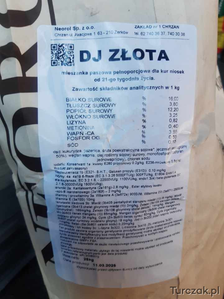 ZHPU Raszewscy w Kawęczynie posiada w sprzedaży DJ ZŁOTA - mieszankę paszową pełnoporcjową dla kur niosek. W/w pasza zwiększa nieśność kur, poprawia jakość i ilość składanych jaj oraz dostarcza kluczowych składników odżywczych wspierających zdrowy rozwój kur.