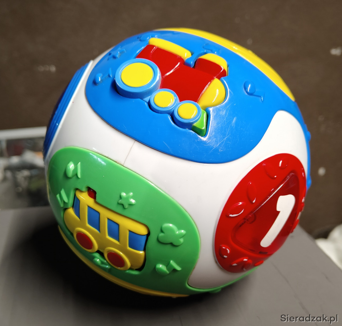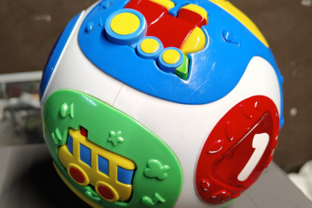 Interaktywna kula sama się turla po naciśnięciu wydaje dźwięki odpowiednich pojazdów, świeci i gra różne melodie. Idealna dla raczkującego niemowlaka