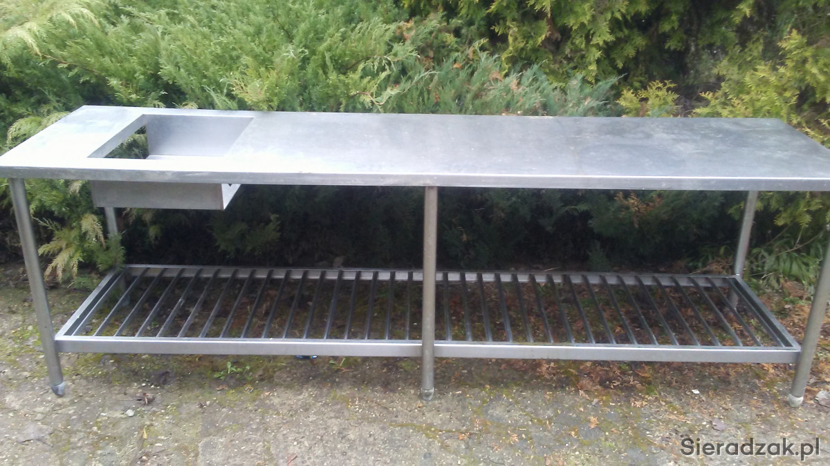 duzy stol gastronomiczny az 2,60 dlugosc 70 szerkosci 85 cm wysokosc z miejscem na zszuty odpadow do oszy i ppka dolna np na skrzynki oakzja