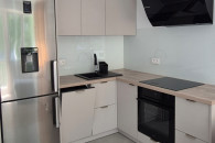 Kuchnia jest w pełni wyposażona (zmywarka, piekarnik, płyta indukcyjna, lodówka z zamrażalnikiem). Kuchnia wygląda estetycznie i nowocześnie. Jest pojemna i funkcjonalna.