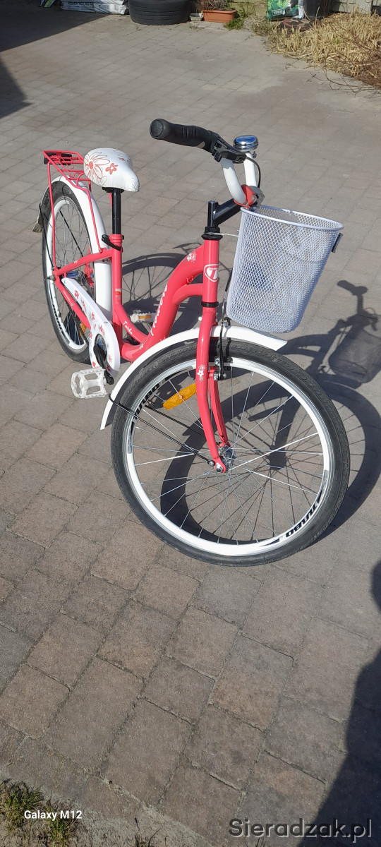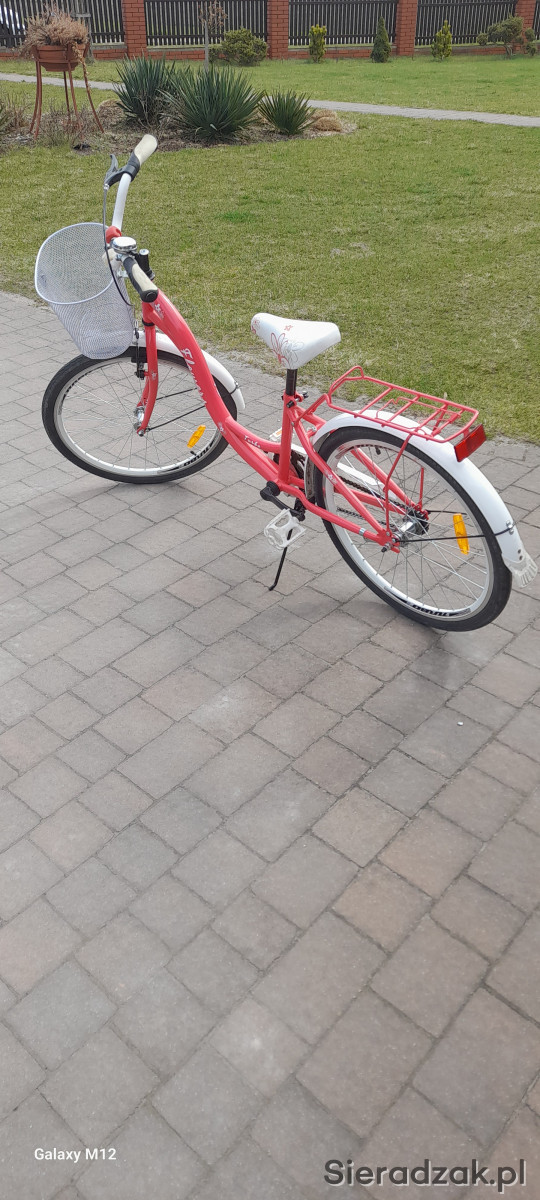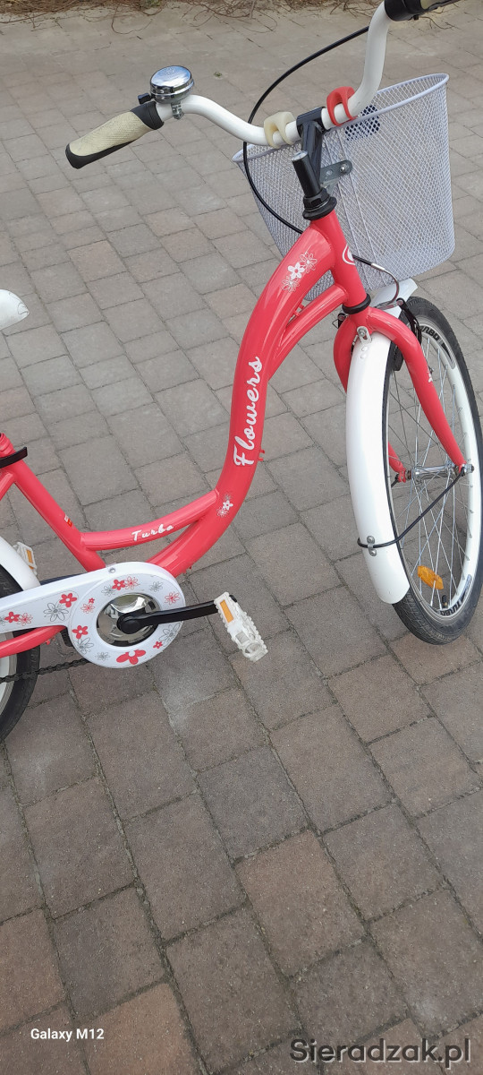 Rower dla Dziecięcy Junior Damka 20" Flowers Czerwony koral +Koszyk.Koła 24, bardzo ładny mało używany praktycznie jak nowy.