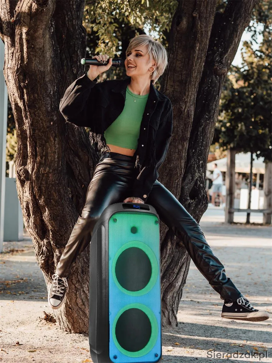 Wysokiej jakości kolumna głośnikowa aktywna Bluetooth z bezprzewodowymi mikrofonami oraz pilotem przeznaczonym do obsługi zdalnej. Muzykę można odtworzyć bezpośrednio ze swojego smartfona za pomocą funkcji Bluetooth, a dzięki wbudowanym licznym portom także z innych źródeł takich jak dysk USB czy karta microSD. Equalizer pozwoli na dostosowanie dźwięku do naszego gustu muzycznego, a zastosowanie podświetlenia LED w różnych kolorach uatrakcyjni wizualną stronę kolumny.