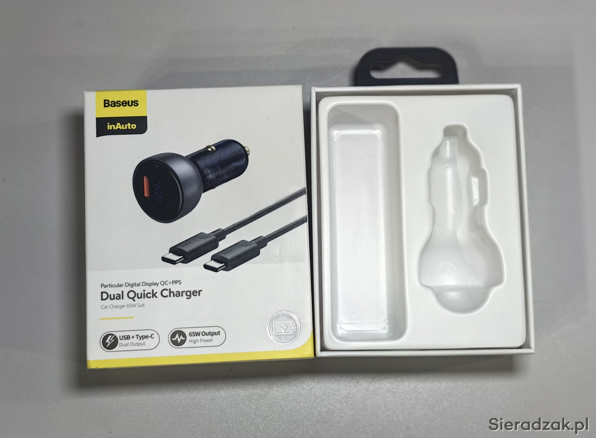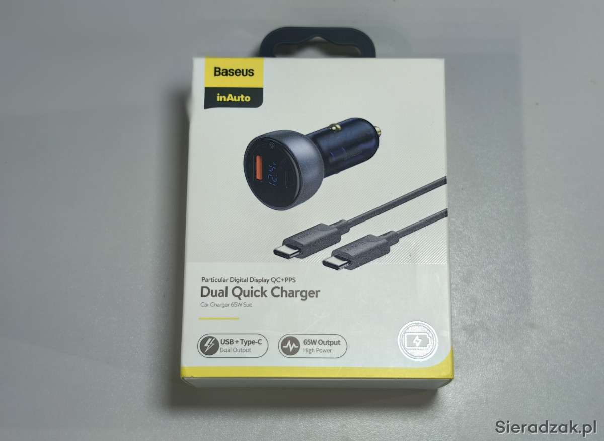 Witam, mamy do sprzedania Ładowarkę samochodową Baseus Dual Quick Charger 65W z kablem USB-C 100W w stanie bardzo dobrym, w pełni sprawną. Posiada jeden pory USB 18W i USB c 45W, co daje łącznie 65W. W zestawie wszystko, co daje producent. Sprzedaż z powodu kupienia szybszej po zmianie telefonu. Możliwy odbiór osobisty lub wysyłka. Proszę pisać. Pozdrawiam i zapraszam również na inne moje aukcje.