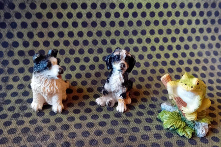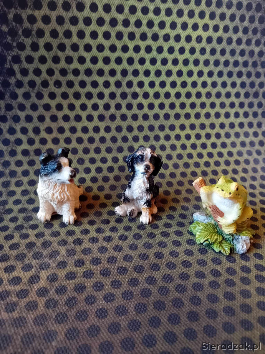 Figurki o wysokości około 4,5cm. Zestaw 2 psy i żaba