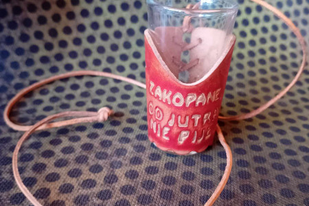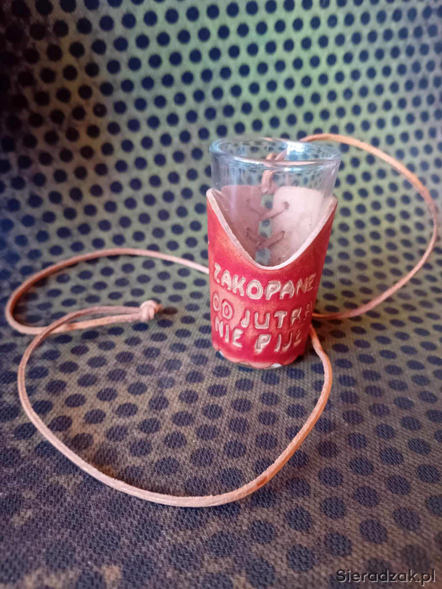 Kieliszek na sznurku '' od jutra nie piję '' Zakopane o pojemności około 25, wysokość 7cm