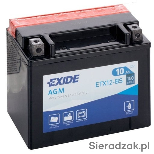 Akumulator motocyklowy EXIDE ETX12-BS YTX12-BS 12V 10Ah 150A EN L+