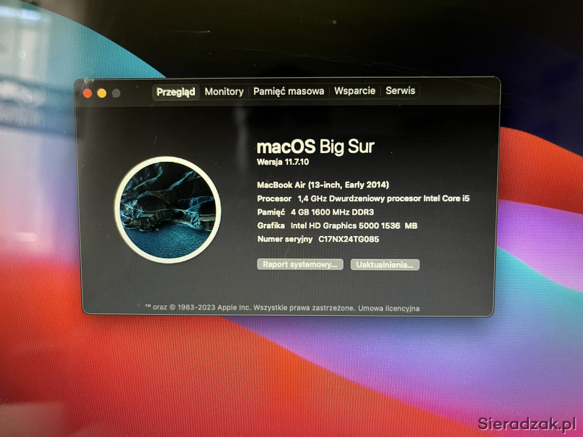 Sprzed widoczny na zdjeciach. Bateria po wymianie 100 cykli ladowania. Wgrany nowy system Big Sur wylogowyny