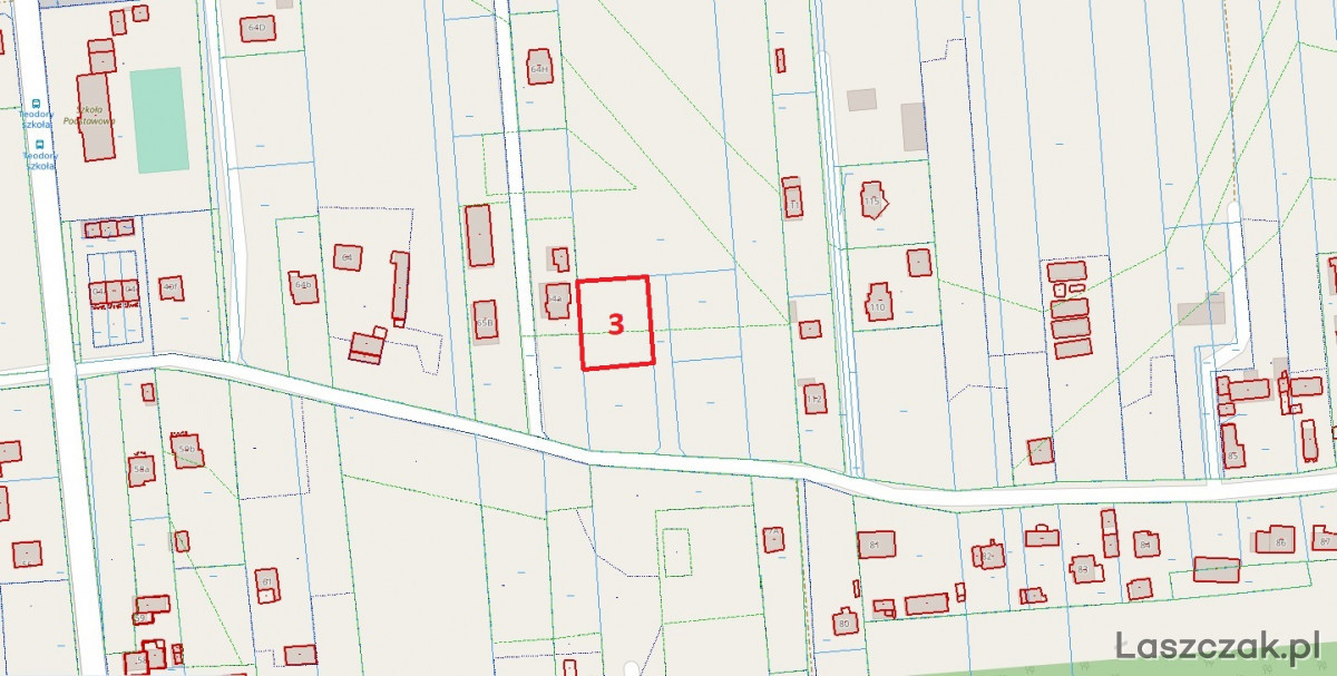 Działka w miejscowości Teodory gmina Łask województwo łódzkie. Zlokalizowana w centrum miejscowości przy drodze asfaltowej, 3 minuty drogi od węzła drogi ekspresowej S8. Działka w sąsiedztwie lasu, wokoło zabudowa mieszkaniowa jednorodzinna. Bezpośrednio przy działkach wodociąg gminny, linia energetyczna niskiego napięcia, Internet. Działka zbliżone do kwadratu o powierzchni 1.086m2, droga wewnętrzna o szerokości 8m.