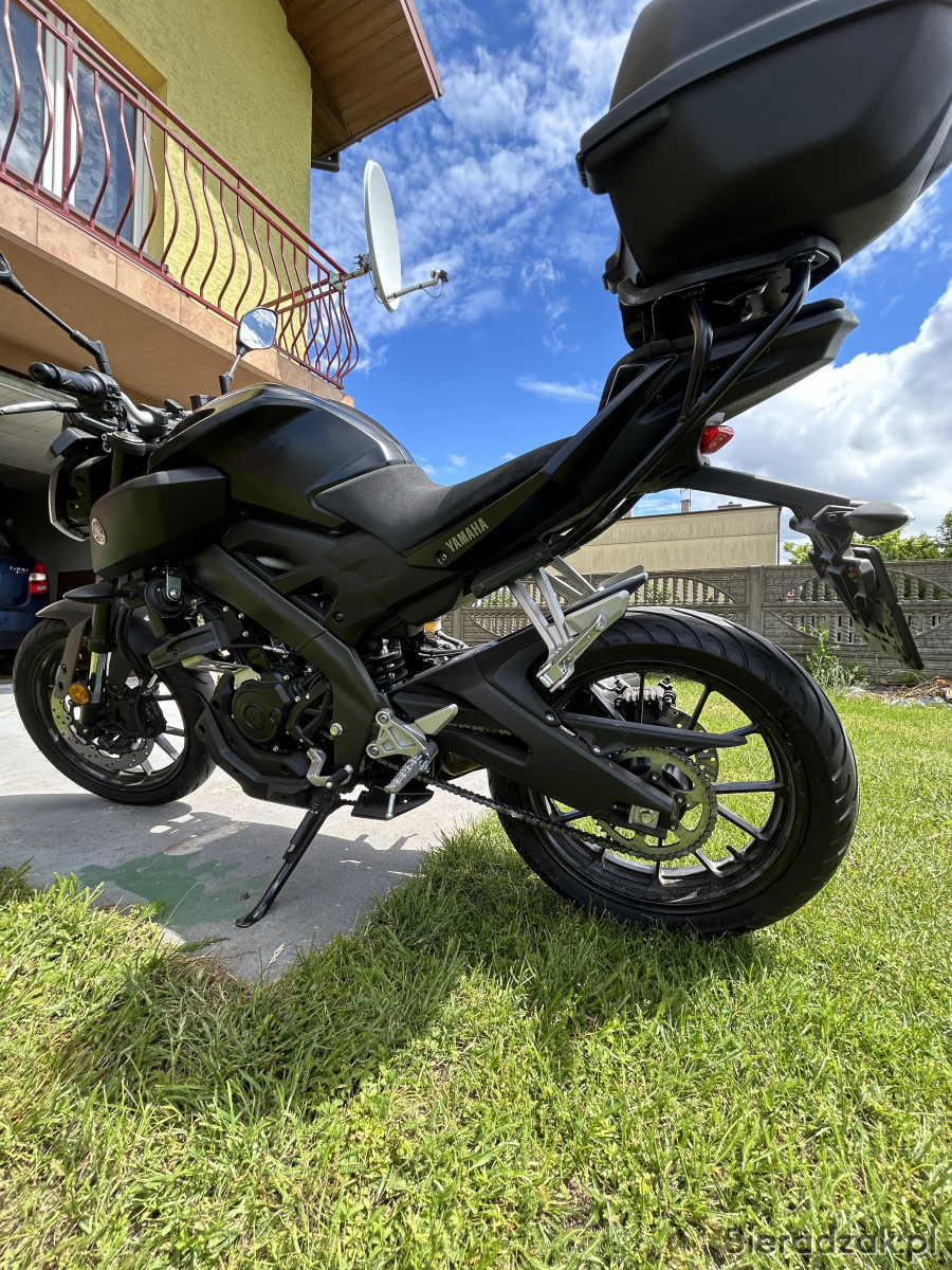 Na sprzedaż posiadam motocykl Yamaha MT 125 o mocy 15KM (kat prawo jazdy: B, A1) z 2017 roku z przebiegiem 12607 km. Motocykl w 100% sprawny, użytkowany od czasu do czasu, stale garażowany. Badanie techniczne i ubezpieczenie ważne. Olej i filtry wymieniane na czas, napęd stale konserwowany.