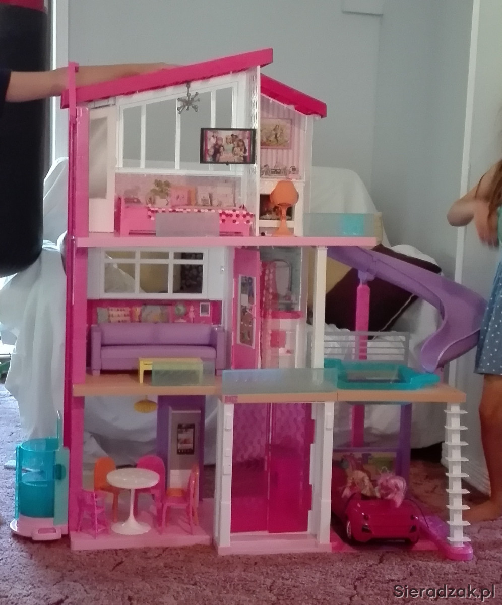 Sprzedam ogromny domek dla Barbie, z basenem , zjeżdżalnią i windą. Domek nie składa się. Odbiór w całości, osobisty. Stan bardzo dobry. Jedyny mankament to drobny odprysk kawałka dachu. Meble kompletne.