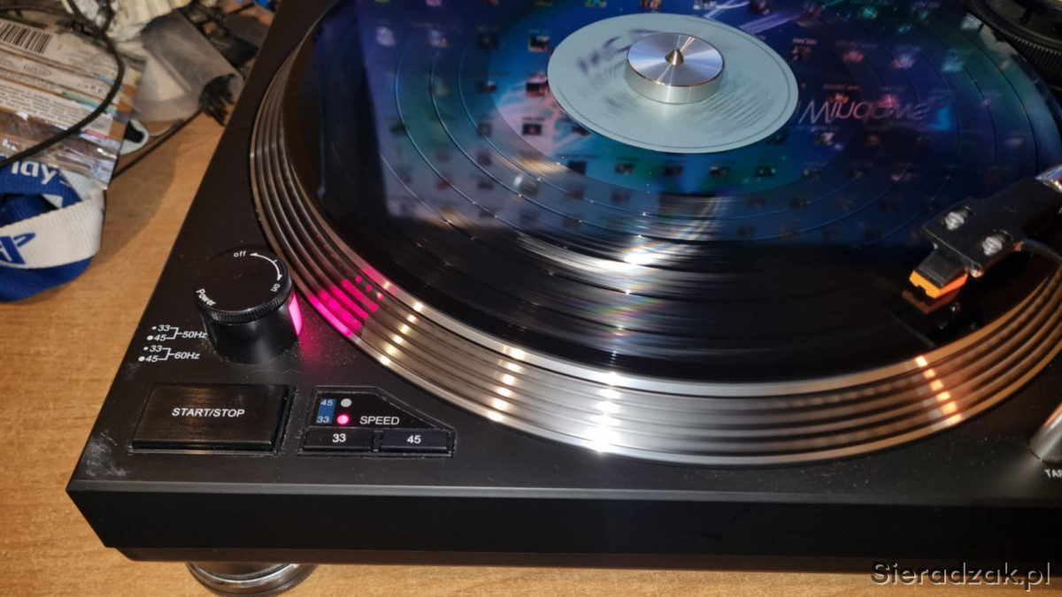 Gramofon w pełni sprawny w pięknym stanie. Bardzo cięzki zbudowany na wzór Technics SL-1210 za 1/4 ceny.. Polecam.