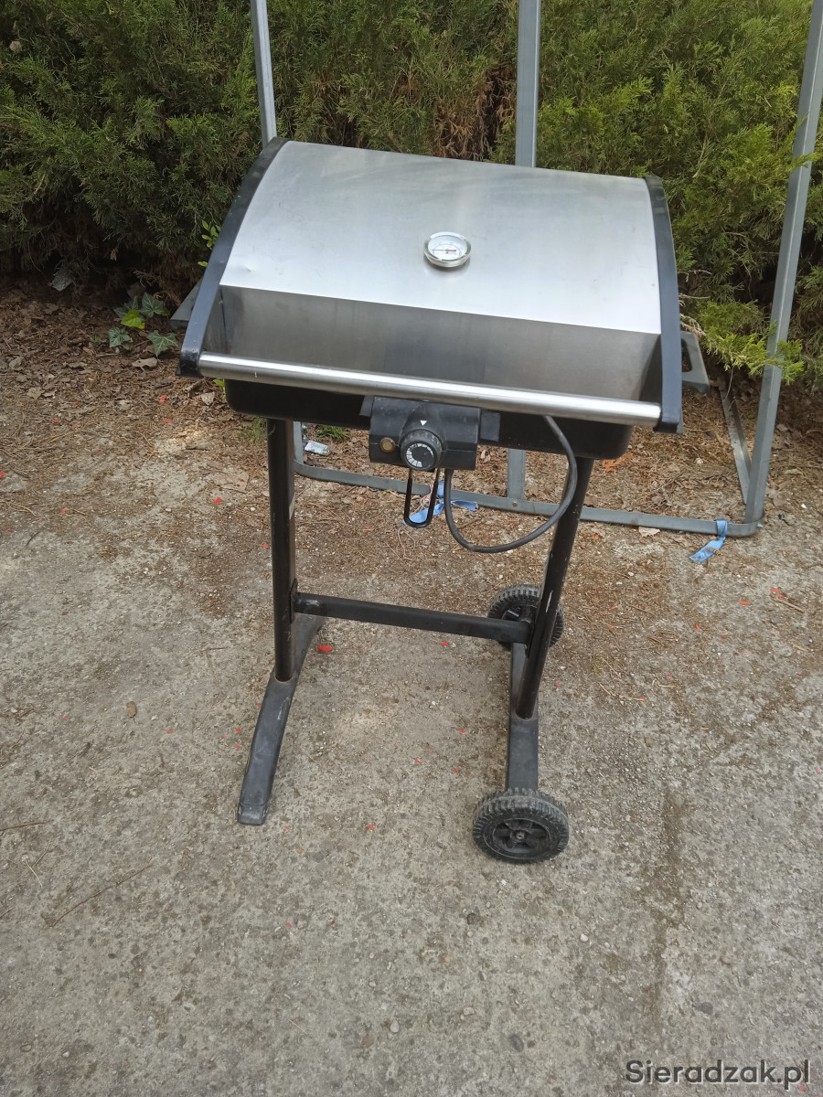 bardzo ladny srebny grill elktryczny na kolkach z termometrem zapraszam