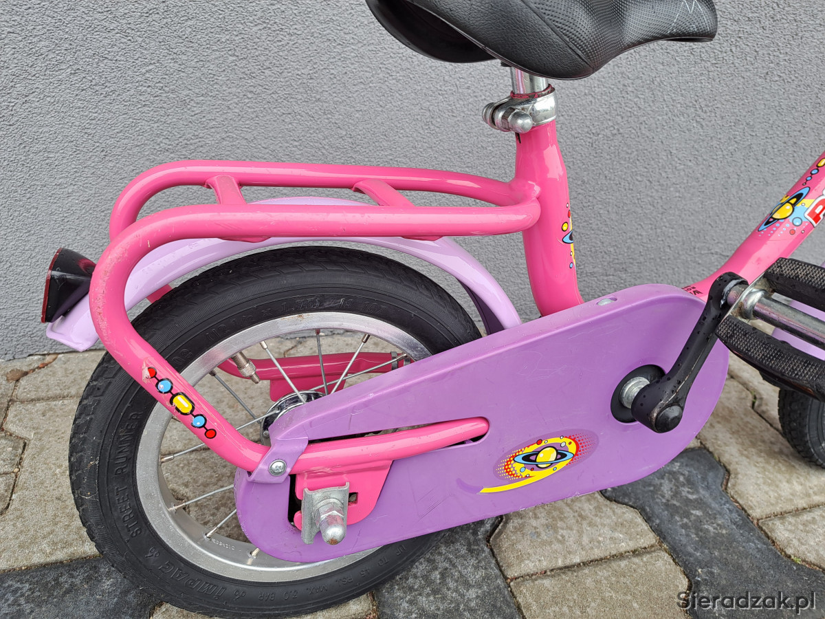 używany rowerek na aluminiowej ramie,koła 16" wyposażenie:chorągiewka,osłona łańcucha,siodełko puky,oświetlenie,bagażnik,osłona kierownicy.stan dobry.