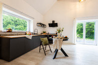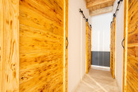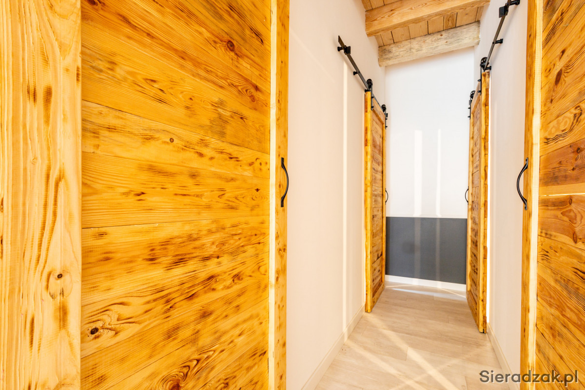 Wnętrze domu jest nowoczesne i dobrze oświetlone. Podłoga z panelami w kolorze jasnego drewna, przesuwne rustykalne drzwi w połączeniu nadają ciepła i charakteru. Podział na strefę dzienną i prywatną ułatwia organizację życia domowego. Wspólne połączenie salonu, jadalni i kuchni wprowadza wrażenie spójności i przestrzeni. Okna tarasowe skierowane są w na południowy-zachód, pozostałe na południowy-wschód oraz północny-zachód. Oddzielne 3 pokoje umożliwiają stworzenie sypialni z miejscem na garderobę, gabinetu oraz pokoju dla dzieci.