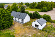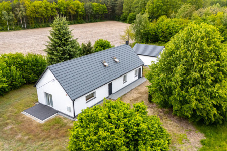 Budynek i jego wnętrze zachwyca swoją prostotą i przemyślanym rozkładem pomieszczeń. Powierzchnia zabudowy domu to 126 m² i ocieplony styropianem 10 cm. Dach dwuspadowy pokryty blachodachówką i ocieplony pianką PUR. Posiada drewniany strop. Zostały zamontowane okna PCV, które łączy doskonała funkcjonalność z niepowtarzalnym designem.