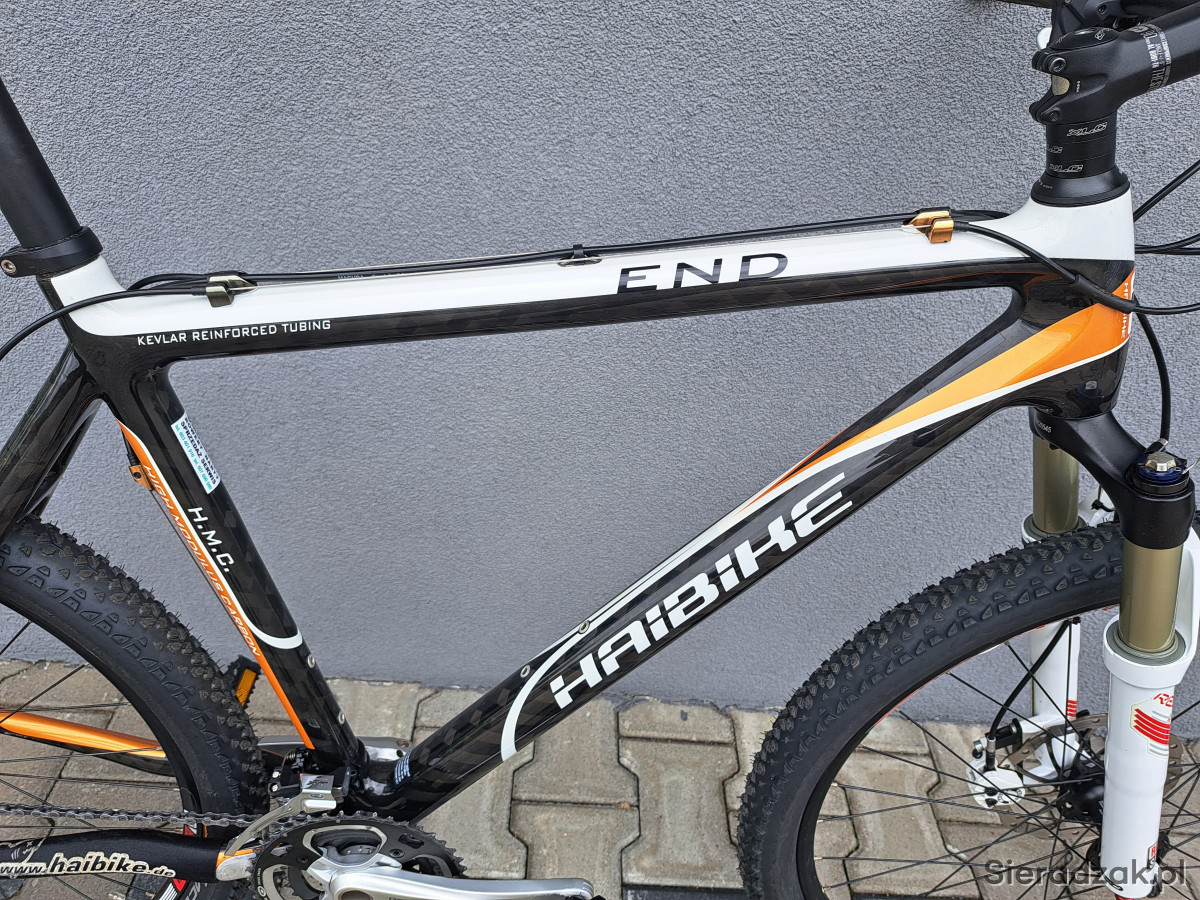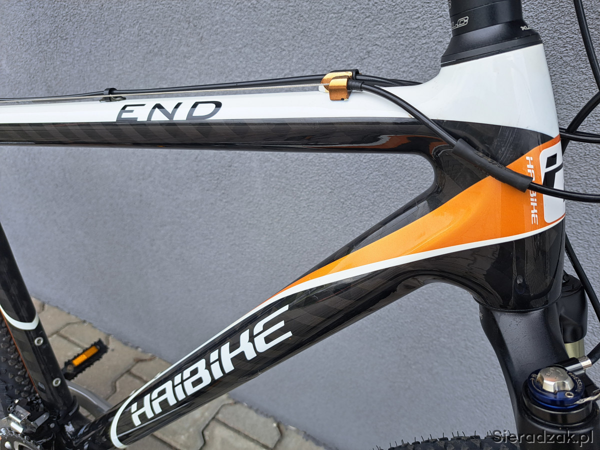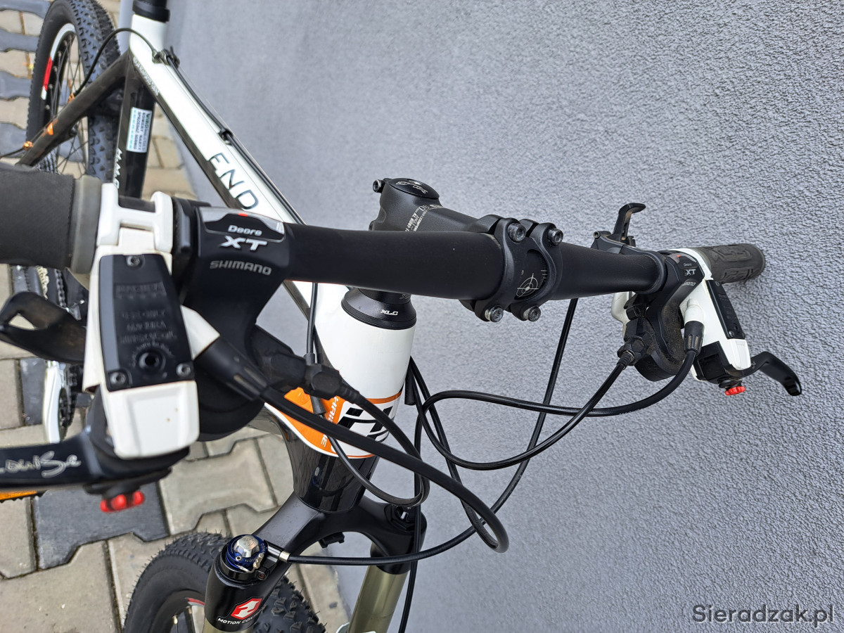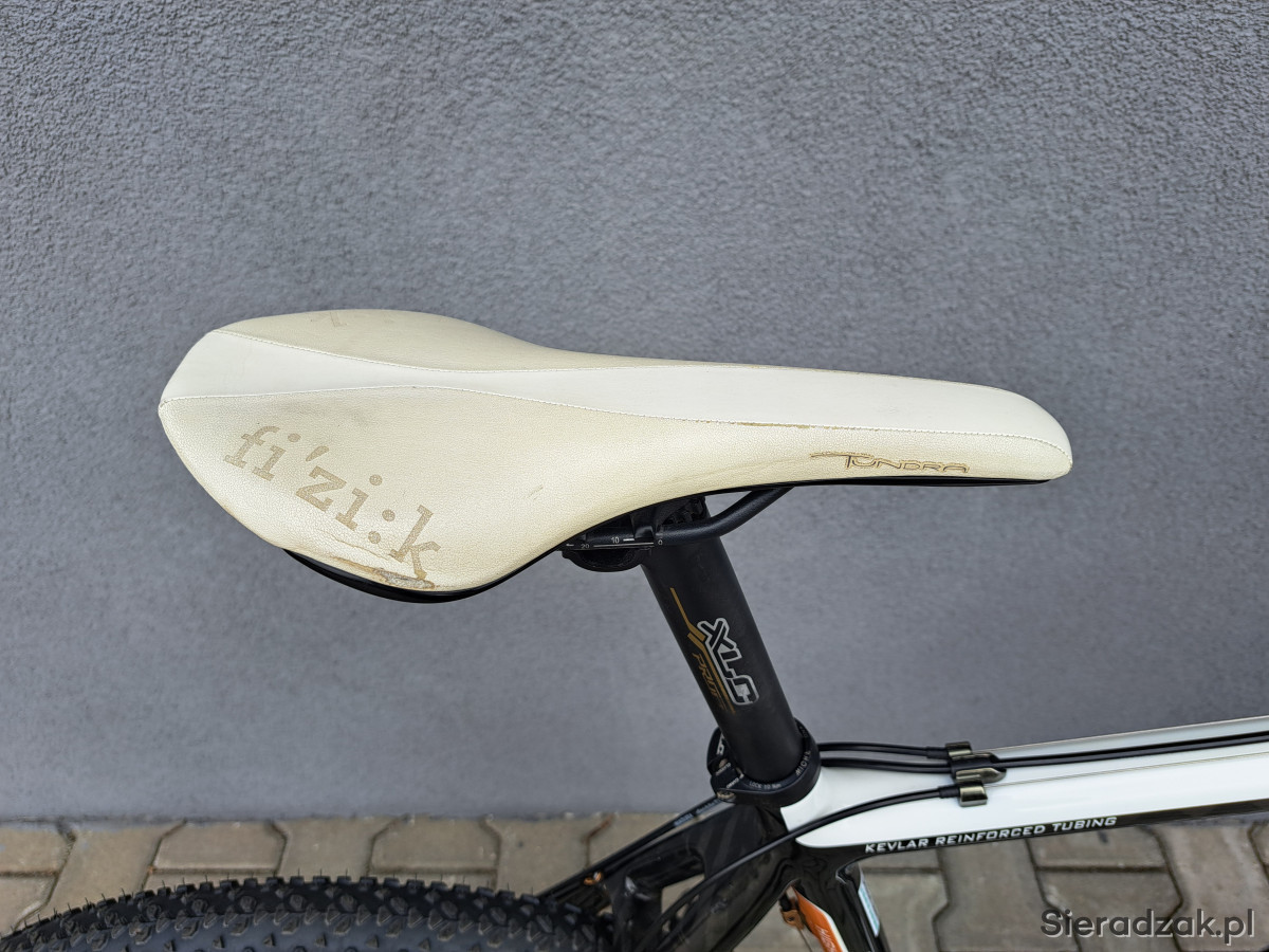 rama carbon 21" 53cm,napęd 3x9,osprzęt shimano deore xt (przerzutki,manetki,korba),hamulce hydrauliczne louise 180/160mm,amortyzator rock shox reba z blokadą skoku,blokada manetką przy kierownicy,siodło fizik,opony continental race king,obręcze dt swiss,rodi.stan bardzo dobry.