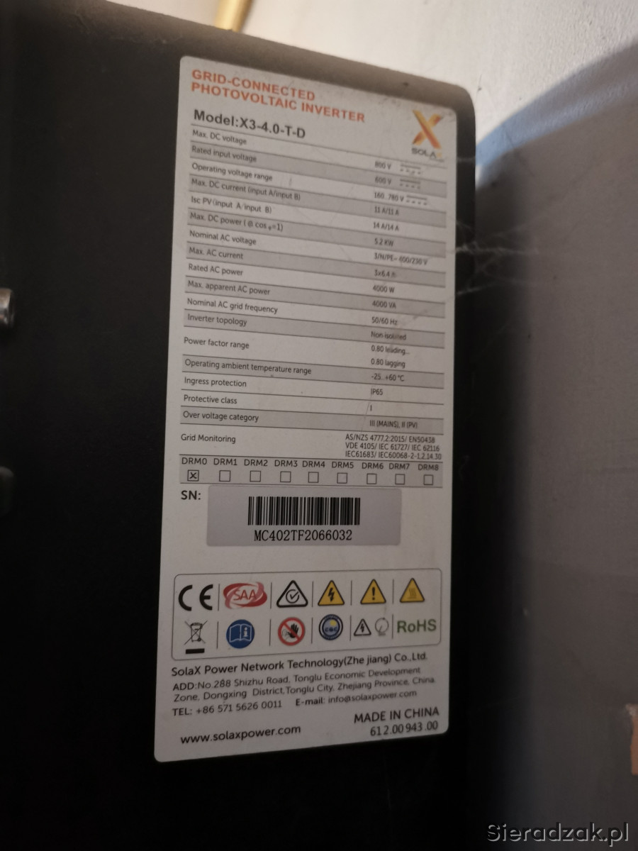 ,, Sprzedam falownik solax X3 4 kW z powodu rozbudowy instalacji