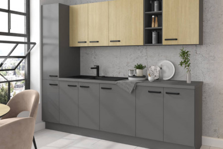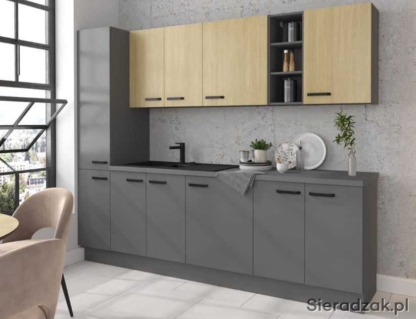 Meble kuchenne Scandi/Nessa 260cm z BLATEM 38mm,fabryka Stolarz-Lempert.