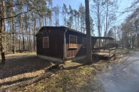 Domek o powierzchni około 35 m2 został wybudowany w technologii drewnianej wykończony płytą od wewnątrz