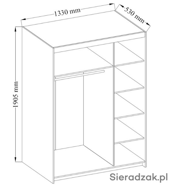 Szafa ELENA 3D -Wymiary: 1330 x 1905 x 530 mm (szer. x wys. x gł.)