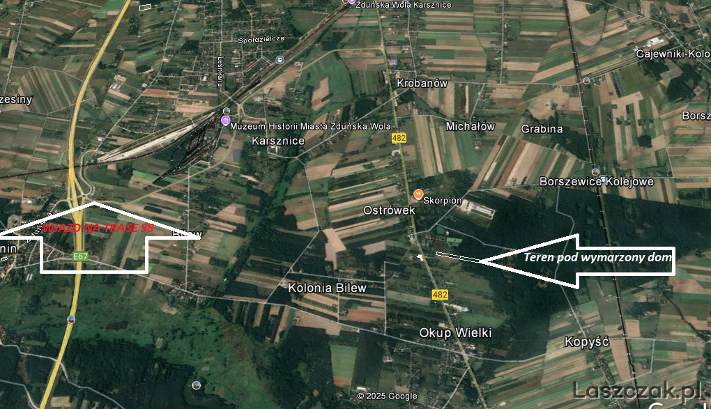 W niedalekiej odległości w Marzeninie znajduję się wjazd na trasę S8 co umożliwia szybki dojazd do Łodzi