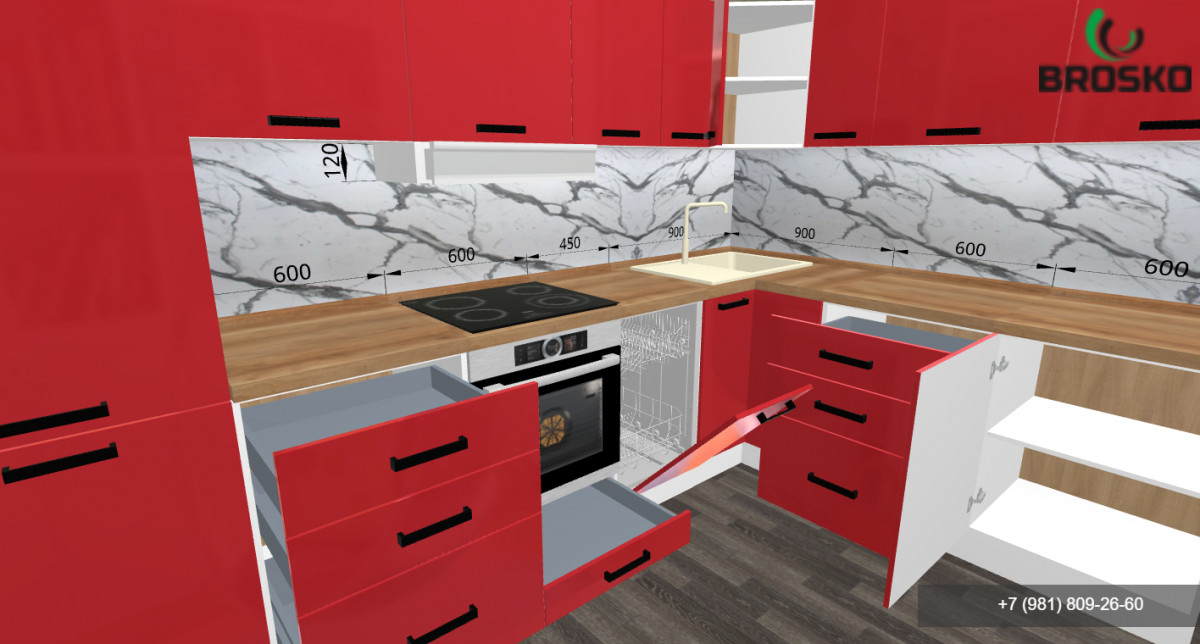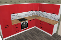 Projekty 3D o dowolnym stopniu skomplikowania, z oknami, drzwiami, z wymiarami pomieszczeń, z kolorem szafek, fasad, blatów, których potrzebujesz - jesteśmy w stanie odzwierciedlić wszystko w naszych projektach i zaoferować kuchnie Twoich marzeń w przystępnych cenach.