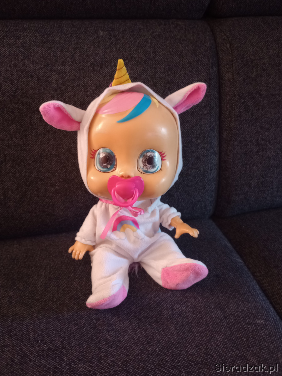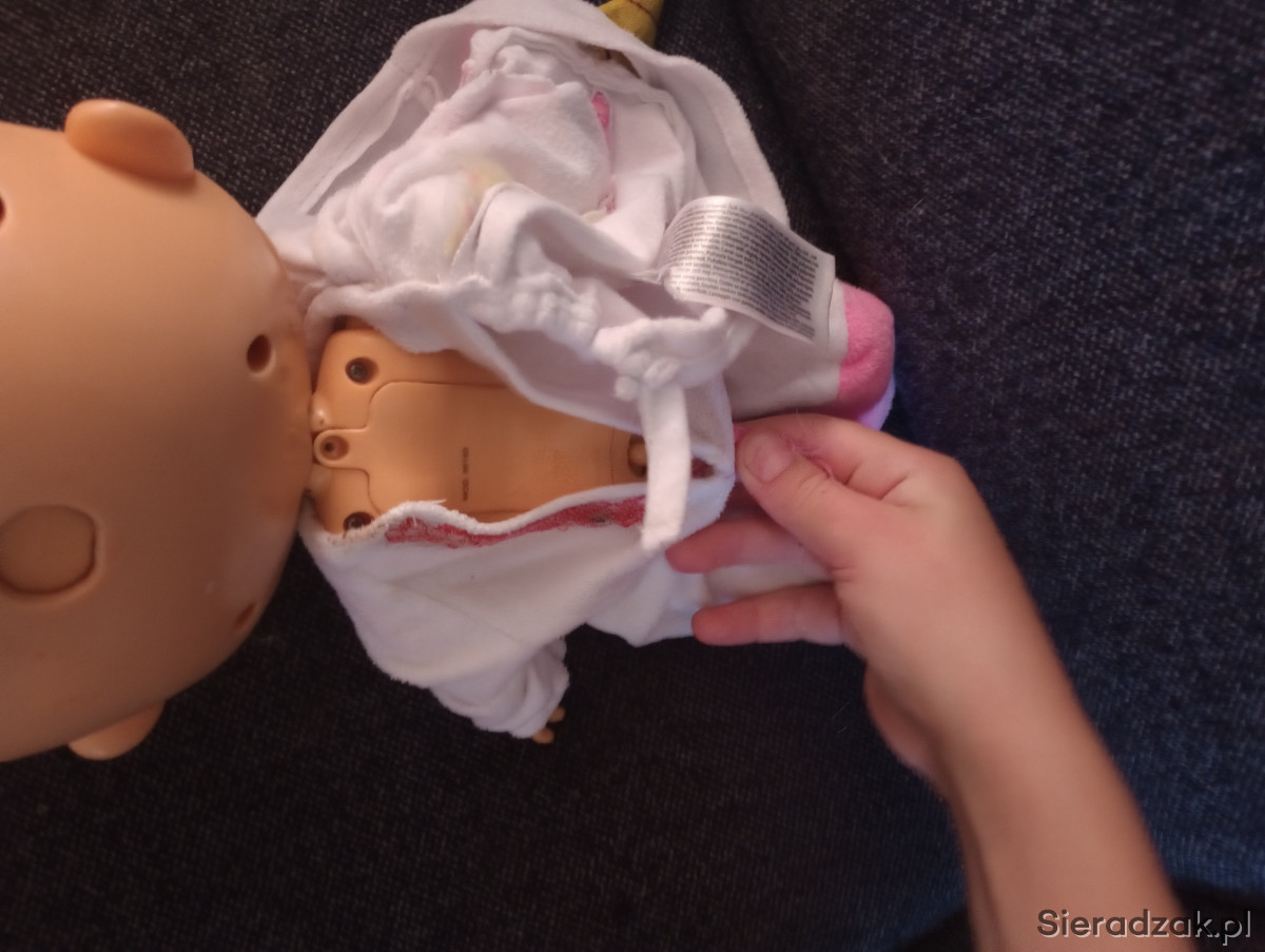 Lalka płacze i lecą jej łzy, nie ma zakrętki do pojemnika trzeba zatykać papierem, sprzedaję z nowymi bateriami tel. 791489919