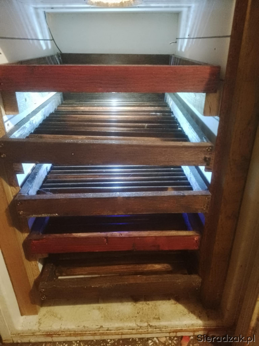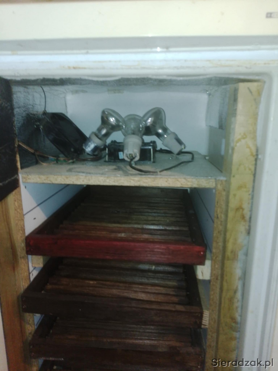 Sprzedam duży inkubator, własnej konstrukcji: 5 tacek z rolkami do obracania jaj i jedna z siatką. Stabilne utrzymanie temperatury, dzięki ociepleniu na żarówkach, co daje możliwość ustawienia dokładnej temperatury bez dużych skoków (dokładność do 0.5 stopnia). Do sterownika można podłączyć grzałkę akwarystyczną dla uzyskania większej wilgotności. Wewnętrzne oświetlenie. Inkubator wykluł 1 rzut ptaków, sprzedaje ze względu na wielkość, jak na moje potrzeby jest za duży.
