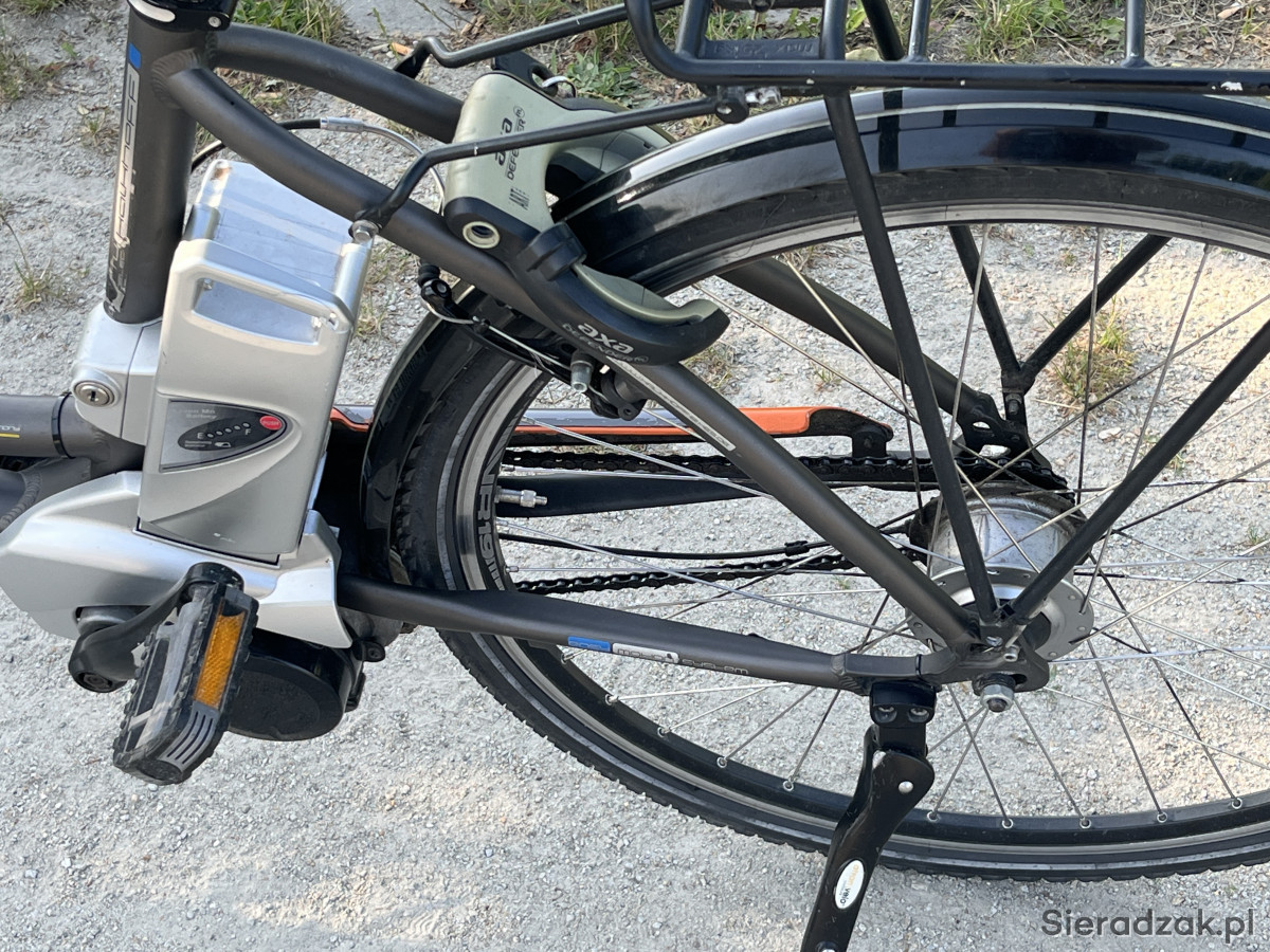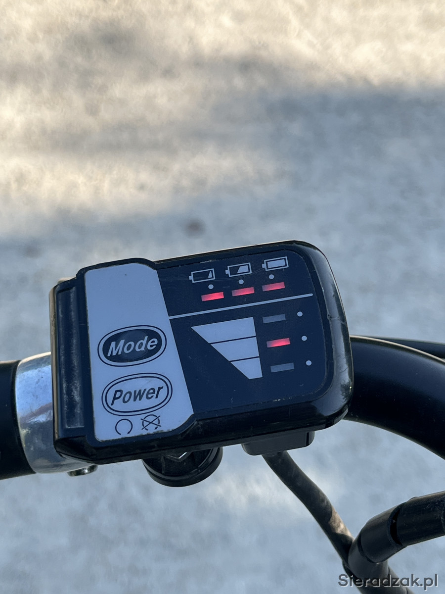 Silnik centralny Panasonic 250 W / 26 V Akumulator litowo-jonowy 26 V / 10 Ah. Na teście 5 na 5 kropek (90-100%) 3 tryby jazdy. Przycisk do prowadzenia( wspomaga prowadzenie) Dodatkowy kuferek na kluczyk na bagażnik. Ładowarka org w zestawie