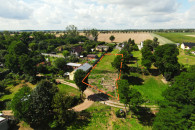 Kształt działki z przodu jest nieregularny, później zachowuje kształt prostokąta.