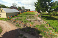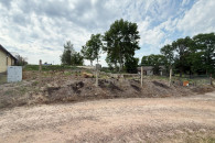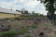 Działka ogrodzona płotem betonowym oraz siatką w panelach.