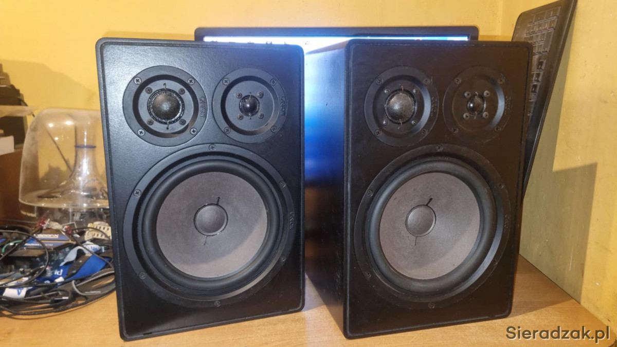 Wymiary : Wysokość - 37 cm Szerokość - 25 cm Głębokość - 22 cm Dane techniczne : Konstrukcja 3-drożna. Moc muzyczna 100 watt Moc nominalna (RMS) 60 watt Impedancja 4 Ohm Pasmo 28 - 30. 000 Hz Zalecane pomieszczenie od 20 do 40 m2