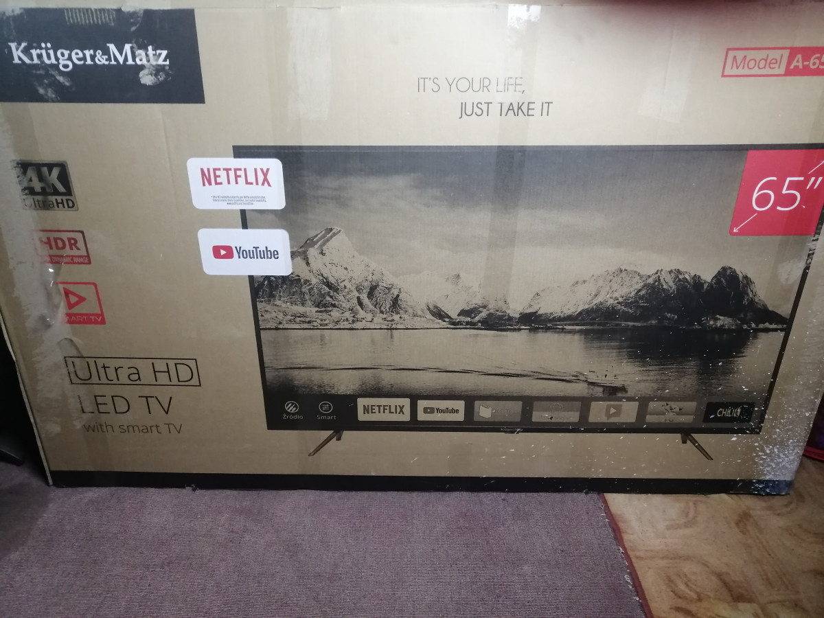 Witam, mam do sprzedania TV telewizor marki Kruger Matz model KM0 265 UHD-S „65” 4K stan bardzo dobry nie pokazuje obrazu lekko tylko widać obstawiam, że podświetlenie matrycy padło, bo miał początki, że była mniejsza jasność obrazi posiada smart tv na systemie linux jest YouTube, Netflix, przeglądarka. Wejścia 1X USB 3,0,1X USB 2,0, minijack, 3x HDMI, wejście internetowe. W zestawie wszystko, co daje producent pudełko pilot w bardzo dobrym stanie kabel zasilający stopki. Możliwość oglądania z dysku zewnętrznego po USB np. pendrive lub dysk jakość obrazu, jak w tej klasie telewizora bardzo dobra dźwięk też. Oczywiście możliwość negocjacji ceny. Pozdrawiam i zapraszam również na inne moje aukcje.